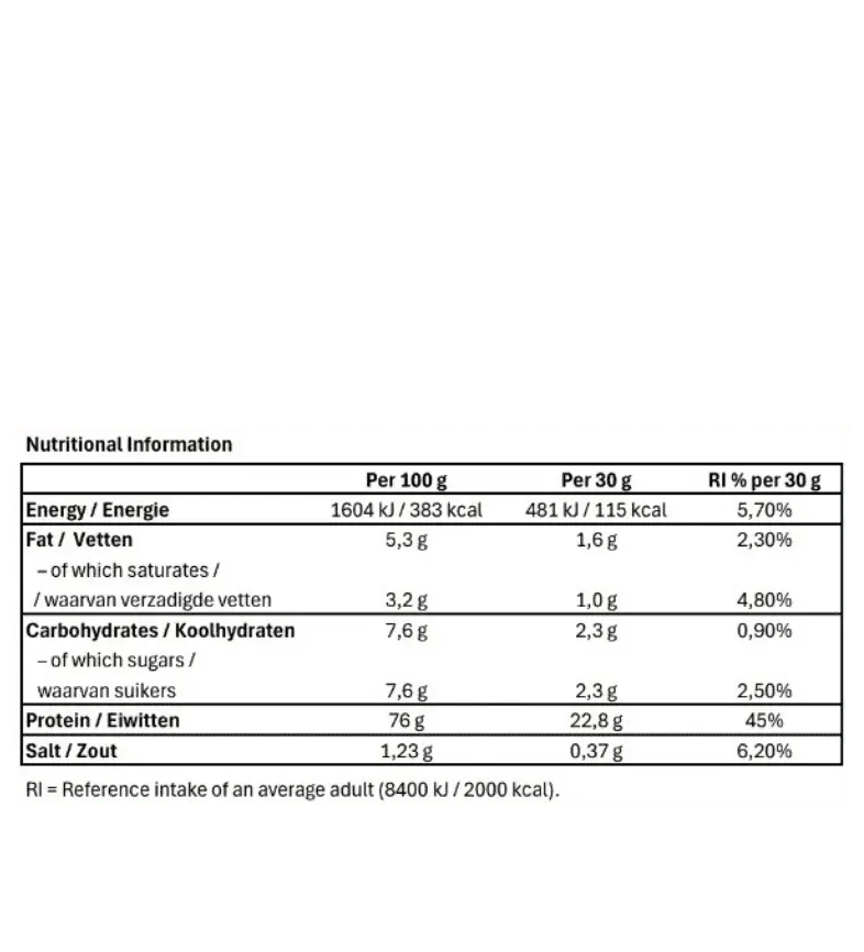 Eiwitten | 76 g (152%) | 23 g (46%) |