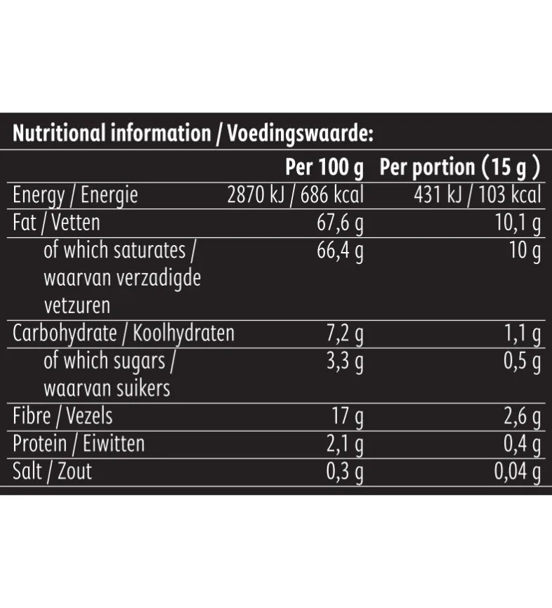MCT poeder lost goed op in dranken, waardoor het perfect is om toe te voegen aan gebak, smoothies en koffie. Een portie van 15 gram bevat 7,4 gram MCTs.