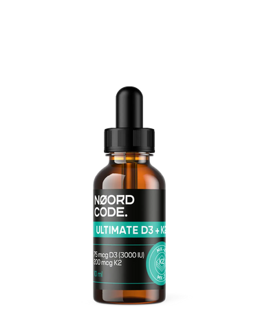 NoordCode Ultimate D3+K2 bevat MK-4 en MK-7 in een 1:1 verhouding. Zo krijg je MK-4 die zich snel door het lichaam verspreidt en MK-7 met langdurige activiteit in lever en botten.